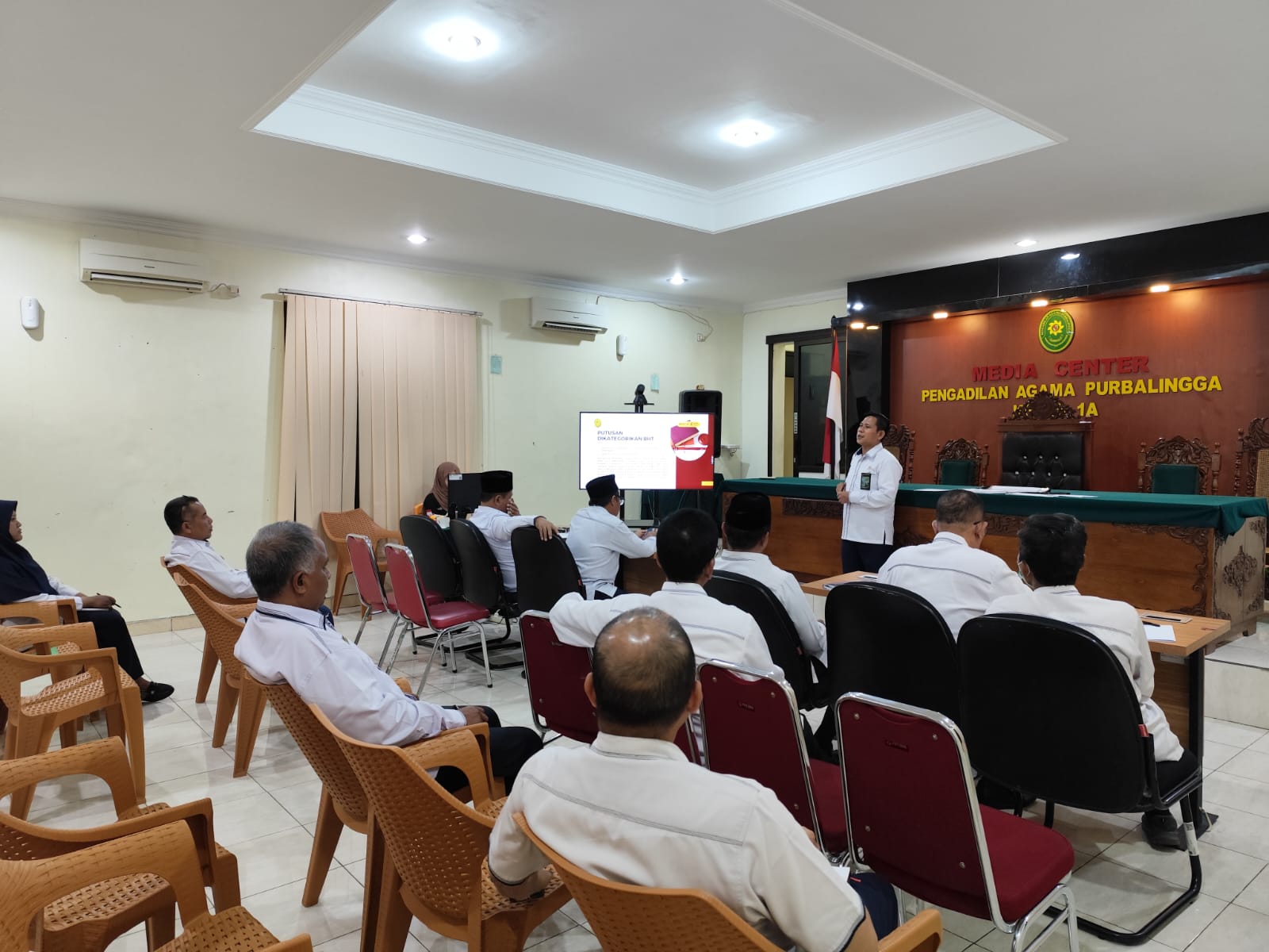 Pada Senin, 16 Desember 2024, Pengadilan Agama Purbalingga mengadakan sosialisasi internal mengenai eksekusi putusan. Kegiatan ini dipimpin oleh Ketua Pengadilan Agama Alwin, S.Ag., M.H., yang bertindak sebagai narasumber. Acara ini diikuti oleh para Hakim, Panitera, serta seluruh jajaran kepaniteraan Pengadilan Agama Purbalingga.