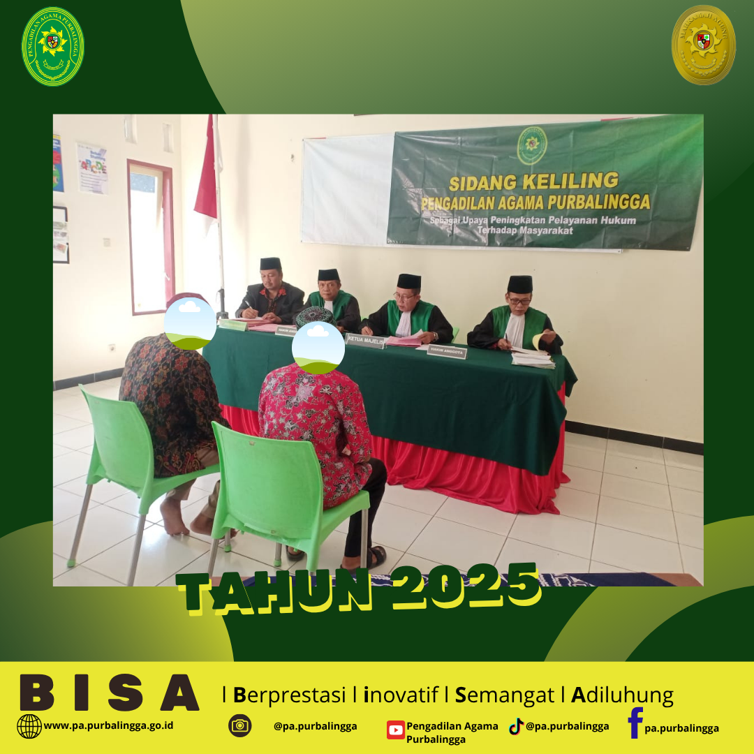Pengadilan Agama (PA) Purbalingga kembali menunjukkan komitmen dalam memberikan pelayanan prima kepada masyarakat. Pada hari ini, Jumat (13/6/2025), PA Purbalingga menggelar persidangan di luar gedung pengadilan, menyasar wilayah Karangsari.